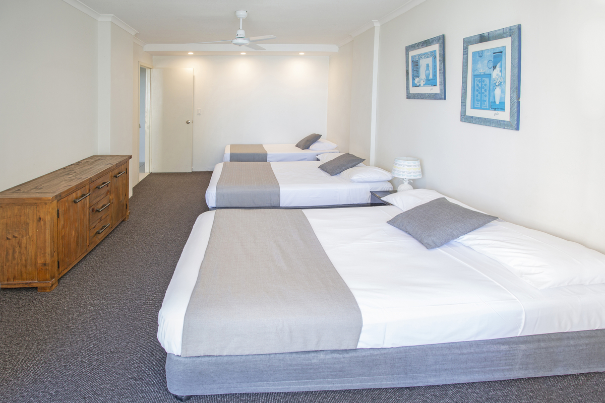 2nd Bedroom: 2 queen, 1 single bed